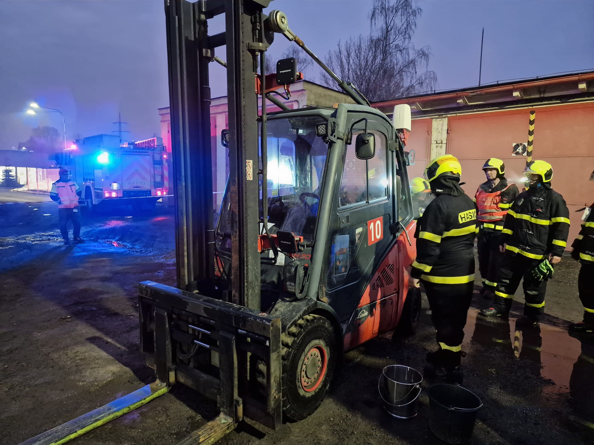 Popis zásahu : Po příjezdu na místo kooperace se zasahujícími jednotkami HZS MSK. Zjištěn únik zemního plynu z poškozeného regulačního ventilu u plynové nádrže VZV. Vzhledem k chladnému počasí docházelo při úniku k zamrzání, proto bylo místo úniku ohřívané horkou vodou. Po řízeném úniku většiny objemu plynové nádrže bylo místo zásahu předáno vedoucímu údržby a jednotka se vrátila zpět na základnu.